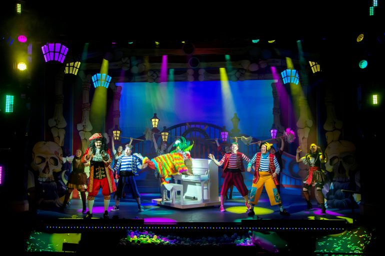 The scenic design truly helps create the illusion of flight and adventure. London rooftops transform into pirate ships, jungles and lagoons with speed and theatrical flourish, supported by colourful lighting and a live band that keeps spirits high in every scene. The musical numbers have real bounce, and the choreography fills the stage with movement and excitement. Younger audience members stayed engaged throughout, and adults enjoyed the comic asides cleverly sprinkled into dialogue.