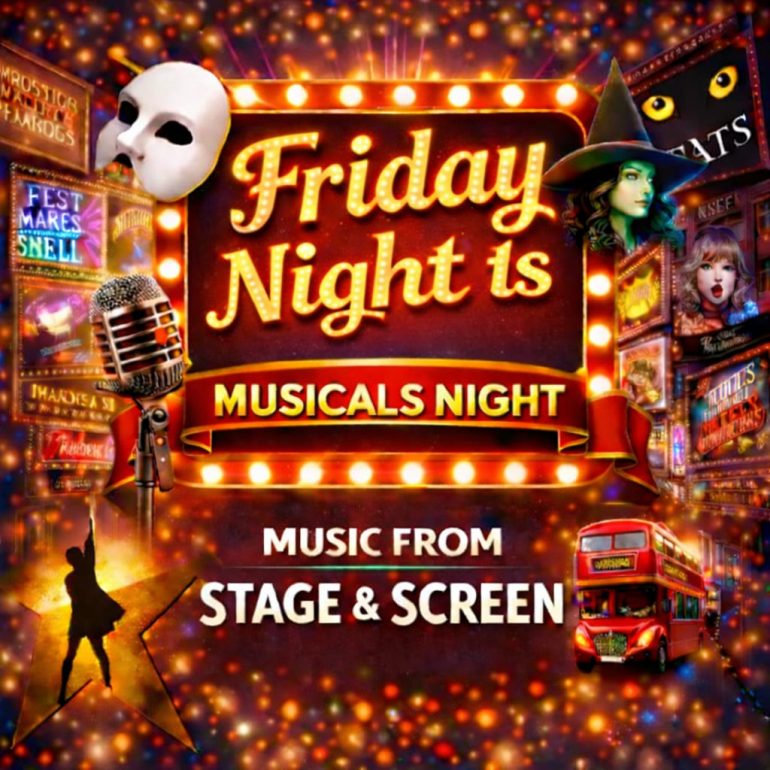 Musicals Friday Night Is Musicals Night 7:00 pm - 9:00 pm more_vert Friday Night Is Musicals Night Tune in to the best of stage and screen! close